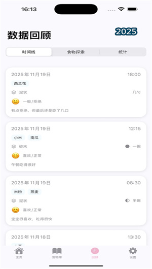 2. 情境化多媒體記錄與情感記憶封裝:區別于冰冷的數據庫,本應用格外注重記錄的情感價值。它鼓勵家長通過輔食瞬間拍照、進食視頻片段及語音備注,記錄下寶寶嘗試新味道時的表情、自己抓握食物的努力等珍貴時刻。這些多媒體內容與對應的膳食日志條目綁定,形成一條條可回溯的“成長時間線”。應用還提供“生成輔食周記”功能,自動將一周的文字、圖片記錄編排成精美的圖文日志,支持一鍵分享給家人,不僅方便了家庭喂養協同,更將日常記錄升華為一份獨特的家庭成長檔案。