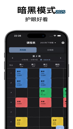 1. 智能雙視圖課程展示與導(dǎo)航功能:方格課表的核心是其高效的雙視圖展示系統(tǒng)。在周課表全景模式下,應(yīng)用通過時間軸網(wǎng)格布局算法,將整周課程以清晰的時間區(qū)塊形式呈現(xiàn)在可視化周歷畫布上,讓用戶對課程分布、空檔時段一目了然,便于進行宏觀的學(xué)習(xí)計劃統(tǒng)籌。一鍵切換至日課表聚焦模式后,界面將轉(zhuǎn)化為以當(dāng)日為核心的時間線詳細(xì)視圖,突出顯示每節(jié)課的具體名稱、地點、教師及用戶自定義的課程顏色標(biāo)簽,確保上課關(guān)鍵信息無遺漏,實現(xiàn)從全局到細(xì)節(jié)的無縫銜接。