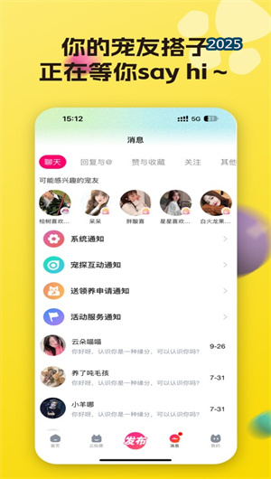 3. 基于LBS的線下社交與活動組織功能:寵之谷創新性地整合了基于位置的社交服務。通過 “附近寵友” 功能,用戶可以在地圖視圖上發現周邊養寵的同好,查看其寵物檔案和動態,并發起線上聊天或線下邀約。核心的 “約伴遛狗” 與 “擼貓聚會” 模塊,允許用戶發布或參與附近的線下寵物社交活動。此外, “新奇寵物發現” 功能會推送周邊寵物店、寵物友好咖啡館或寵物展等信息,方便用戶探索新奇寵物體驗,拓展線下養寵生活圈。