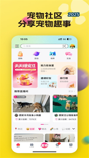 2. 以寵物為中心的強關系社交網絡:區別于泛社交平臺,寵之谷構建了一個 “寵物為紐帶”的垂直強關系社區。在這里,社交的破冰點與核心話題始終圍繞寵物展開。用戶的個人身份在一定程度上讓位于其寵物的“身份”,通過寵物檔案、寵物動態進行互動。這種設計極大地降低了社交門檻,提高了交流的純粹性與共鳴感。從線上討論到線下共同遛狗,社交關系基于共同的興趣(養寵)和具體的活動(遛狗、聚會)自然深化,形成了信任度更高、黏性更強的同城寵物社交圈層。