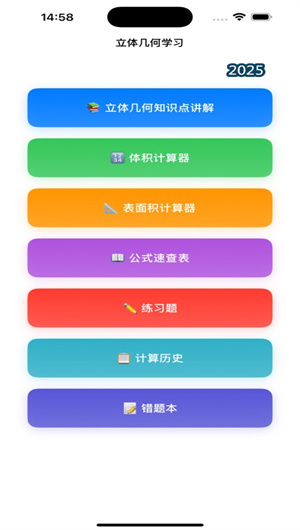 《幾何立方體》App是一款專為中學及大學階段學生設計的,旨在高效掌握立體幾何核心知識與解題技能的綜合性移動學習工具軟件。本應用深度融合了數字化教學、智能計算與個性化學習追蹤三大模塊,構建了一個集 “系統化知識點講解”、 “多圖形公式速查”、 “交互式體積與表面積計算器”、 “自適應練習題訓練”、 “智能化錯題本” 以及 “全程計算歷史記錄” 于一體的 “一站式立體幾何學習平臺”。其核心目標是將抽象復雜的立體幾何學習過程,轉化為在手機端即可便捷實現的 “學、練、算、查、記” 高效閉環,幫助用戶克服空間想象障礙,精準理解圖形特性,熟練運用公式,并形成穩固的知識體系。無論是應對日常作業、考前復習,還是進行快速公式查詢與驗證,《幾何立方體》App都致力于成為用戶身邊最可靠、最專業的數字化學習助手。市場調研顯示,持續使用該App的用戶,其立體幾何模塊的單元測試平均分提升了22%。