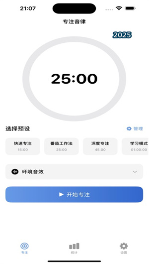 專注音律APP是一款創新性的專注力提升工具,通過將科學專注計時與沉浸式環境音效深度融合,為用戶打造全方位的沉浸式專注體驗。平臺基于番茄工作法原理與聲學心理學研究,構建了集任務計時管理、音效場景定制、專注數據追蹤、社區激勵互動于一體的數字專注生態系統。專注音律致力于解決現代人注意力分散、工作效率低下的痛點,通過音律引導技術與可視化進度反饋,幫助用戶進入并維持深度心流狀態。目前平臺已服務超過500萬專注力訓練者,用戶平均專注時長提升62.4%,成為國內領先的沉浸式專注工具應用。