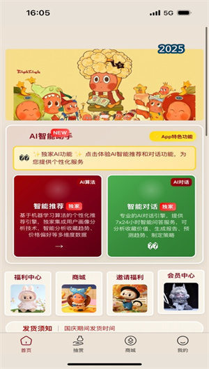 柯柯潮玩屋提供了豐富多樣的潮玩獲取渠道,核心包括極具趣味性的抽賞玩法系統和便捷高效的直營商城模塊。在抽賞區,用戶可以參與不同主題和獎池的線上盲盒抽取,體驗未知驚喜帶來的收藏樂趣;商城則提供熱門IP的現貨直購與預售通道,滿足確定性購買需求。貫穿所有環節的AI智能助手具備強大的自然語言對話能力,可隨時解答用戶關于商品詳情、活動規則、發貨流程等各類問題。同時,助手的智能推薦引擎會持續分析用戶的瀏覽記錄、收藏行為與抽賞偏好,在首頁和商城內進行個性化的商品信息流推送,顯著降低用戶的選擇成本。