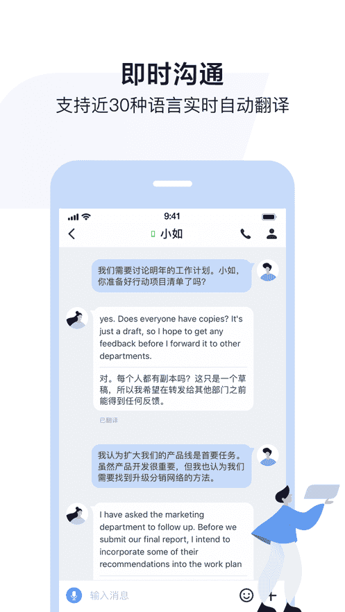 1、即時交流適用于近30種語言的即時自動翻譯。