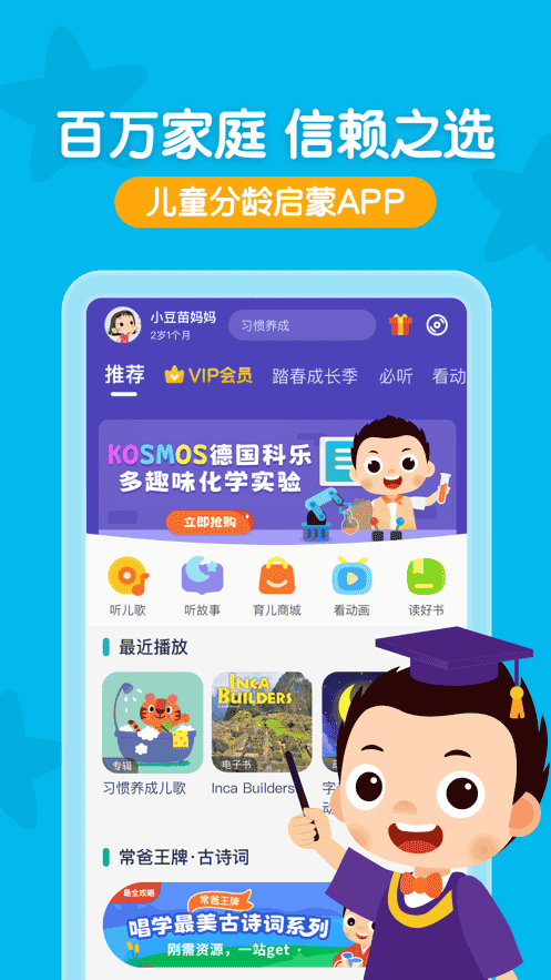 常青藤爸爸App,由杭州小小常科技有限公司匠心打造的兒童分齡啟蒙蘋(píng)果軟件,為孩子提升綜合素質(zhì),讓孩子在快樂(lè)中成長(zhǎng)!
