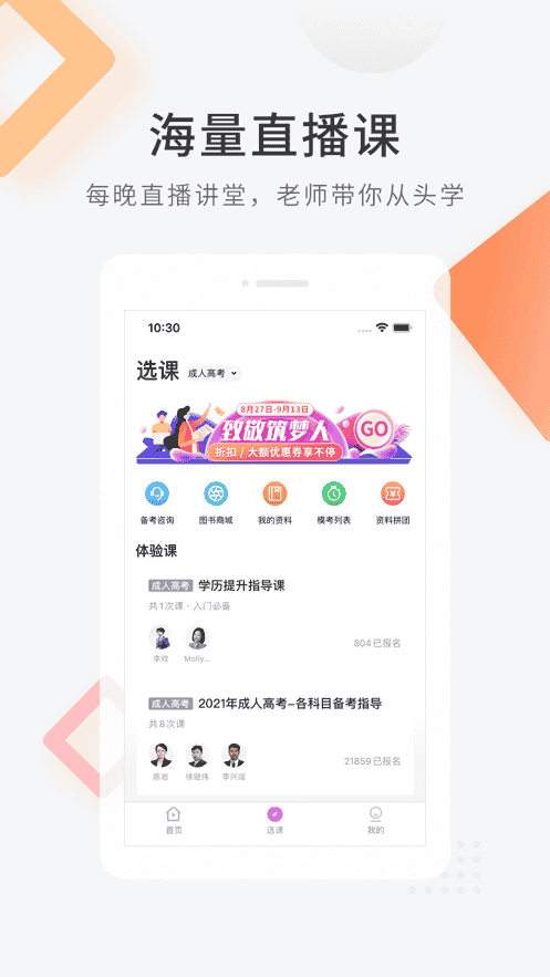 1、每天晚上都有大量的在線課程和直播講堂,老師會帶你從頭學習。