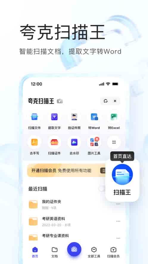 5、夸克掃描王,智能掃描文檔,將文本提取到Word。