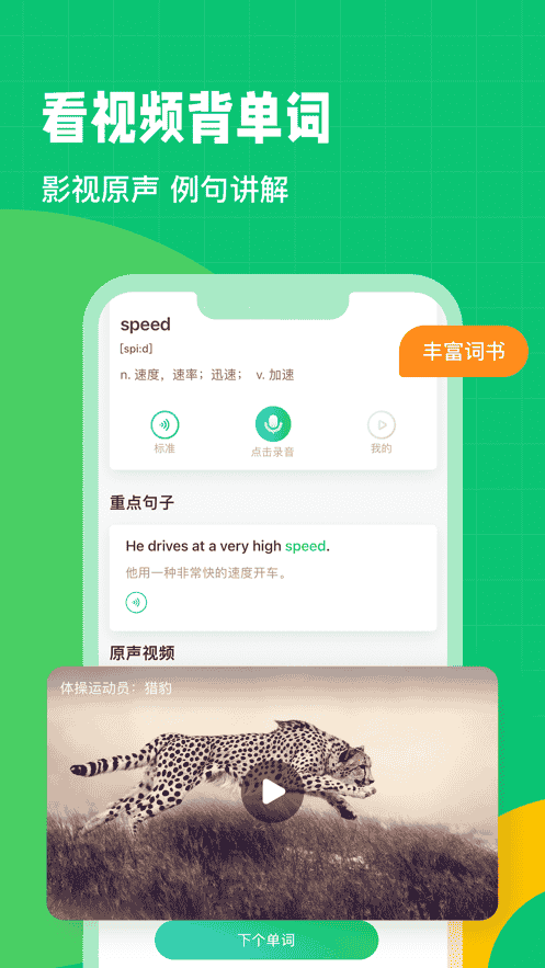 1、利用Ai糾音技術,個性化診斷錯誤發音并提供準確清晰的發音示范;在跟讀過程中實時糾正錯誤發音,為您的口語學習保駕護航。