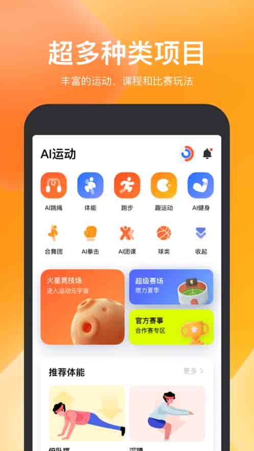 2、許多類型的項目,豐富的運動、課程和比賽玩法。