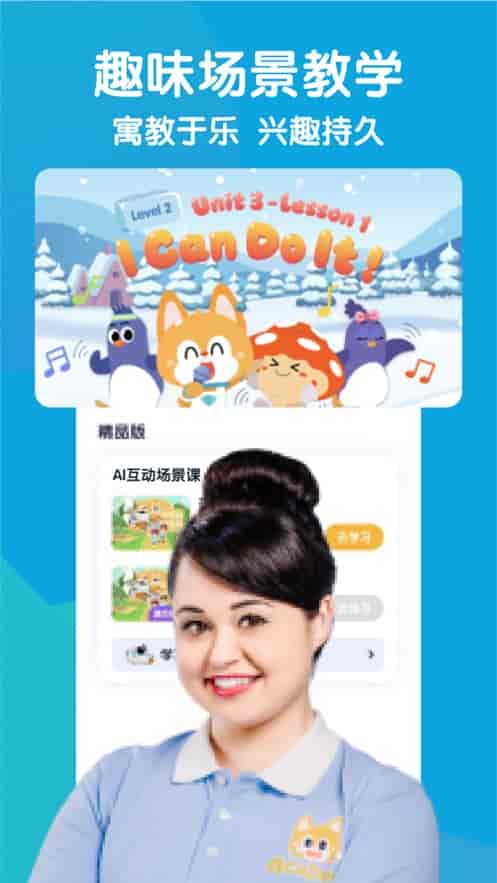 1、Ai北美本地地道發(fā)音,線上智能與小朋友互動環(huán)節(jié),讓小朋友口語發(fā)音標(biāo)準(zhǔn),輕松與國際友人對話。