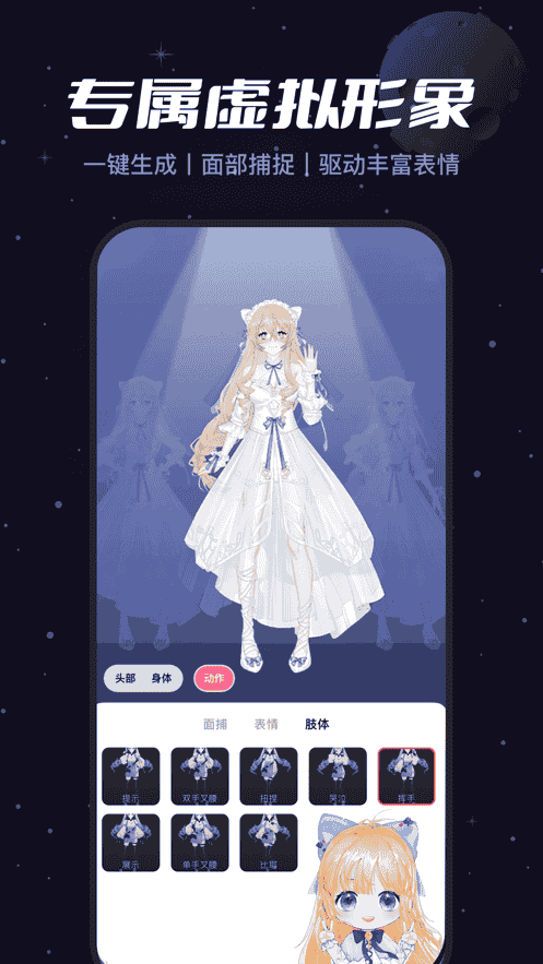 1、簡單強大,超全功能輕松上手,人人都是UP主。專屬虛擬形象,一鍵生成,面部捕捉,驅動豐富表情。