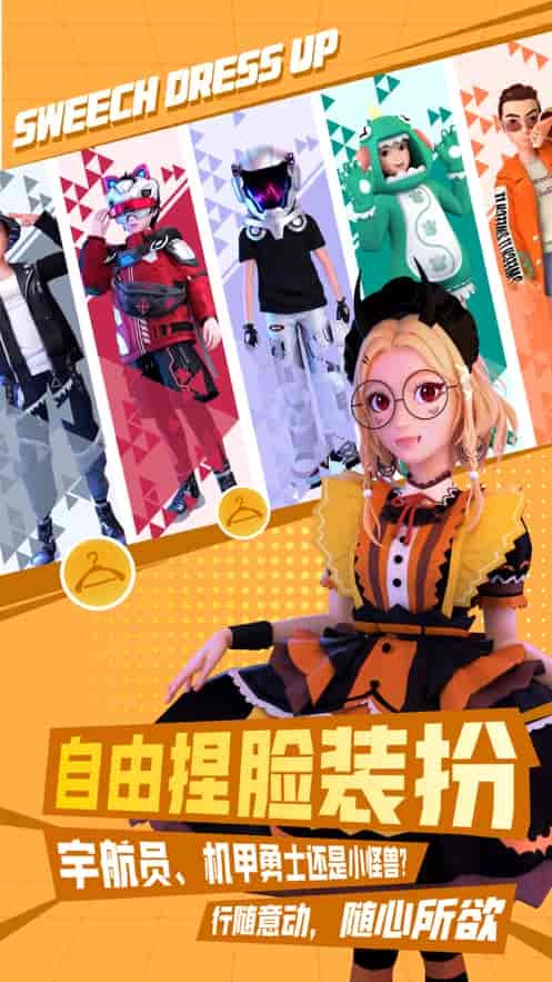 1、通過Sweech強大的編輯功能,讓每個人都可以捏制自己的3D數字人偶,自由創建臉部、發型、裝飾、服飾等,這就是在這個數字世界的獨一無二的你。