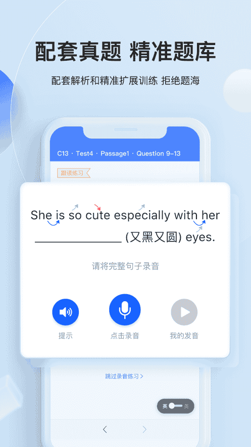 3、覆蓋雅思聽力、雅思口語、雅思寫作、雅思閱讀,模擬考試場景,測評聽說讀寫水平,給出改進建議。