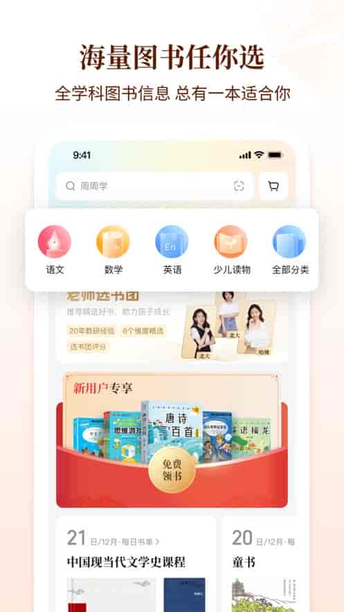 3、讀物學習,專業(yè)書評老師選書團,20年教研沉淀多維度測評,全學科精品圖書為您量身選書,配備智能教輔系統,助力孩子在讀書的同時健康成長。