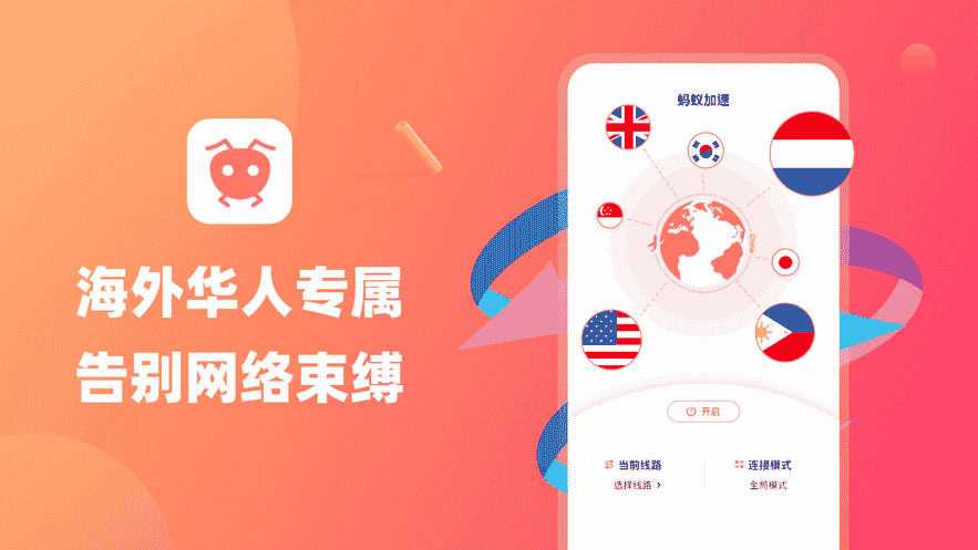 螞蟻加速App,隨時嗨看國內視頻、直播 ,隨心暢聽音樂,隨地暢玩游戲。