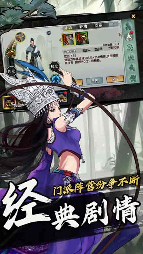 2、眾多獨具特色的武俠角色,每個角色都有自己的故事和技能,等待玩家去挖掘。