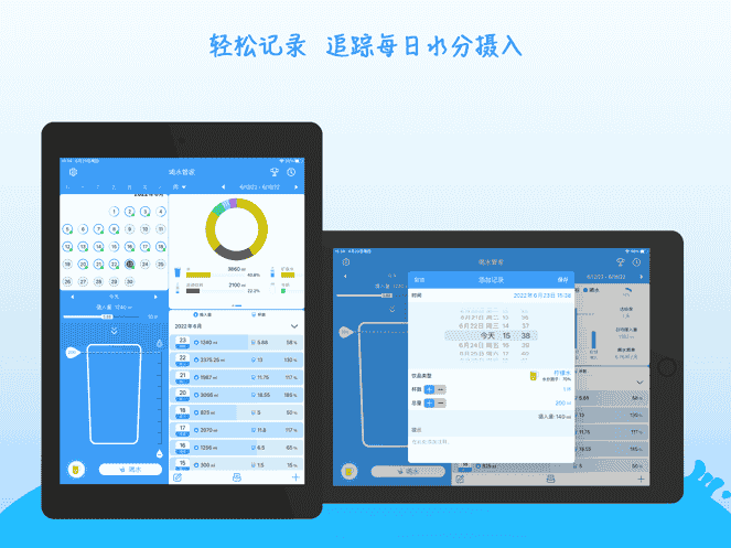 喝水管家iPad版是一款專為iPad用戶設(shè)計(jì)的應(yīng)用程序,旨在幫助我們追蹤飲水量并在適當(dāng)?shù)臅r(shí)間提醒我們喝水。通過合理的飲水計(jì)劃,喝水管家助您養(yǎng)成良好的飲水習(xí)慣,維持健康的生活方式。
