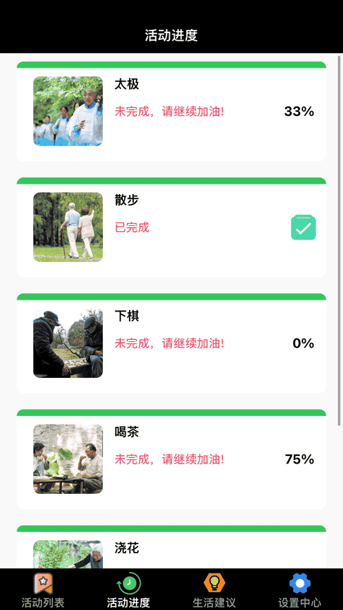 完成度管理:App能夠自動(dòng)統(tǒng)計(jì)用戶完成的日常活動(dòng),幫助他們了解自己的生活情況。