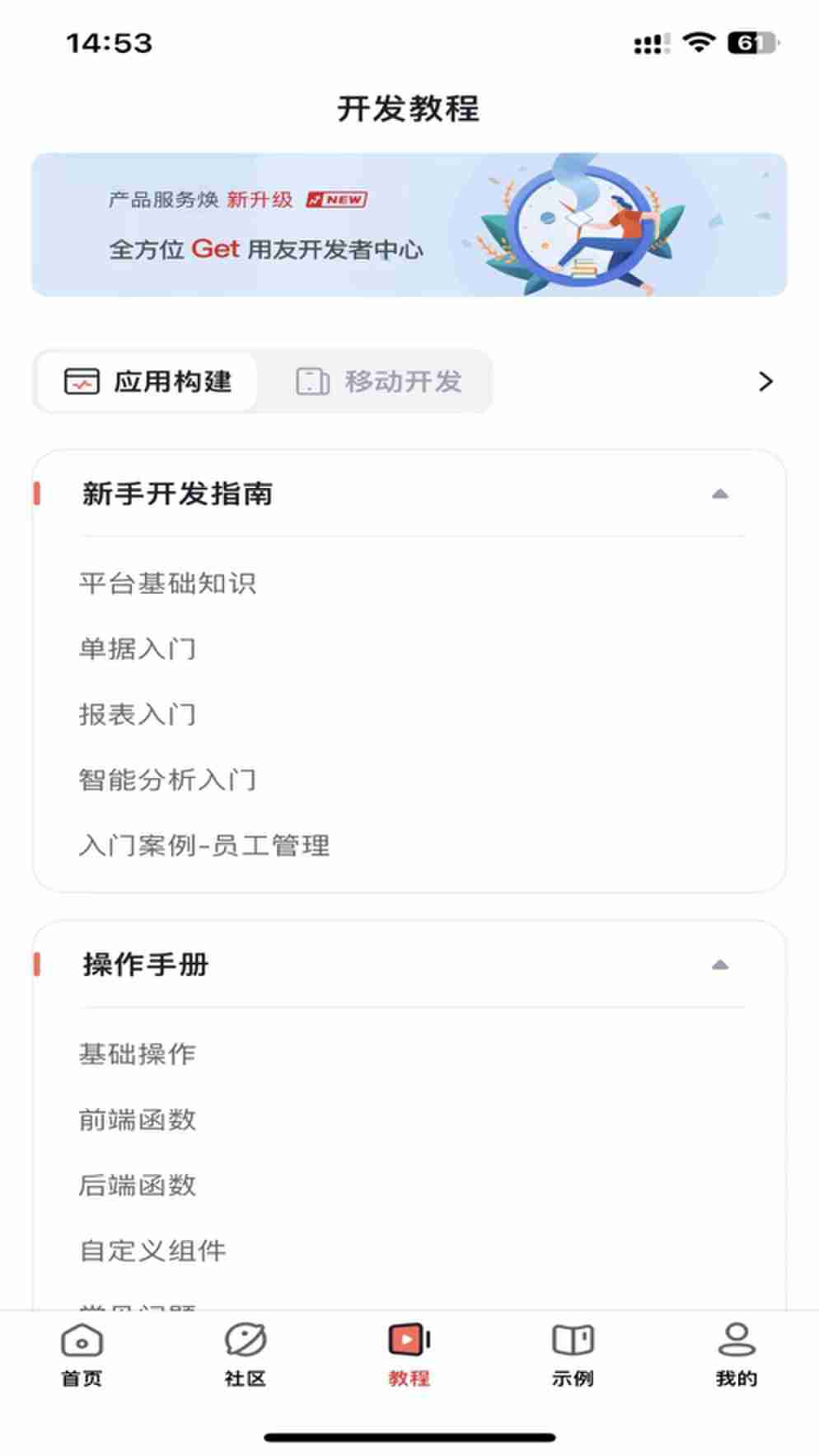 友開發App是一款專為開發者打造的調試、學習與交流應用。主頁面包含主頁、社區、教程、示例、我的五大功能板塊,全方位滿足開發者的技術需求,幫助他們提升技能、解決問題、拓展人脈。