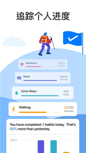 習慣追蹤:可輕松追蹤您的日常習慣,確保您的計劃按時完成。