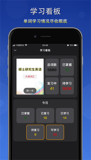 學習路徑:采用科學的學習路徑,初次學習、多次復習、最終掌握,幫助用戶有效記憶每個單詞。