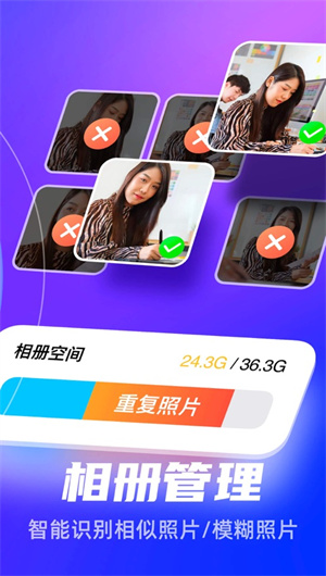 實時監控:實時監控手機存儲空間的使用情況,及時提醒用戶清理垃圾文件。