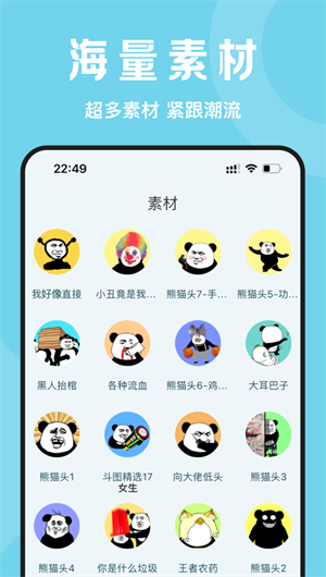 豐富的表情資源:包含了超多熱門表情和自制表情包模板,讓你在斗圖時總有新花樣。