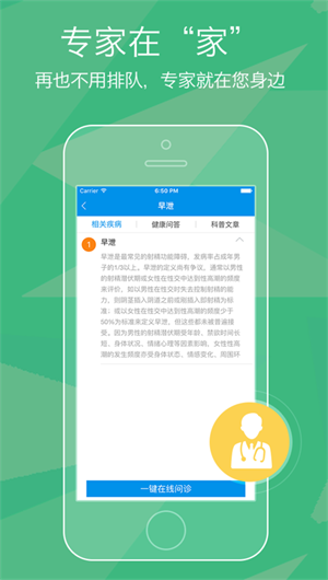 在線咨詢:由專業(yè)醫(yī)生在線解答用戶的問題,提供一對一的服務(wù)。