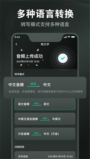 支持多語言:我們的應用支持多種語言的語音轉文字。