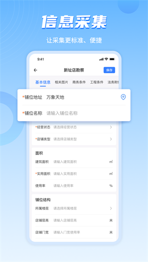 實時數據采集:勘店人員可以通過應用在現場實時采集店鋪信息。