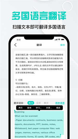 多功能合一:將文件掃描、文字識別、文本翻譯和文件轉換等多種功能集于一體,方便用戶使用。