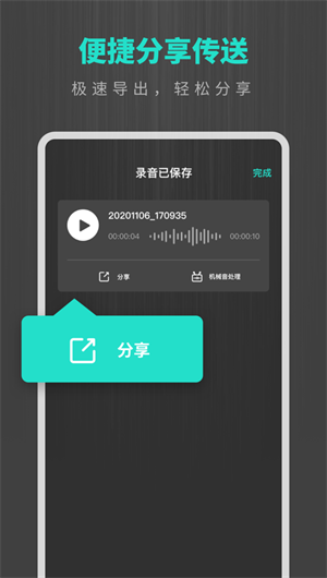 一鍵分享和變聲:支持一鍵分享錄音文件,以及對錄音文件進行變聲處理。