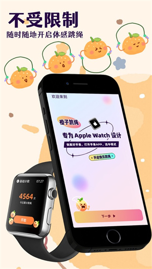 橙子跳繩App是一款利用手表實現無繩計數的健康運動應用。用戶只需要佩戴手表,通過特定的動作,便能實現跳繩次數的精準記錄,無需受到實際跳繩的約束,隨時隨地進行鍛煉,刷新你的個人記錄。