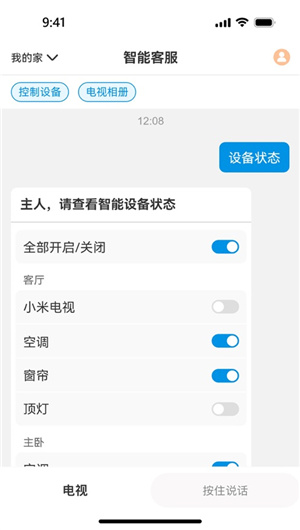 智能服務:提供本地天氣變化時智能客服的出行提醒、一鍵控制全屋設備等功能。