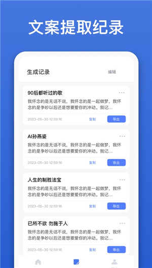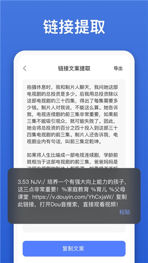 鏈接提取文案:用戶可以通過輸入鏈接,自動(dòng)提取相關(guān)的文案內(nèi)容。