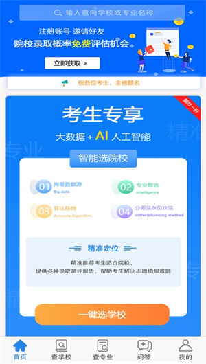 一站式服務(wù):提供院校查詢、錄取概率測(cè)評(píng)、高考資訊等一站式服務(wù),省時(shí)省力。
