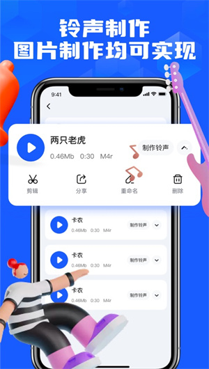 鈴聲定制:用戶可以對制作的鈴聲進行編輯和個性化定制。