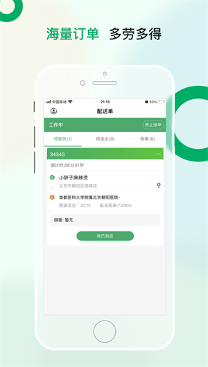實(shí)時(shí)接單:接收服務(wù)商推動的運(yùn)單,實(shí)現(xiàn)實(shí)時(shí)接單,提升配送效率。