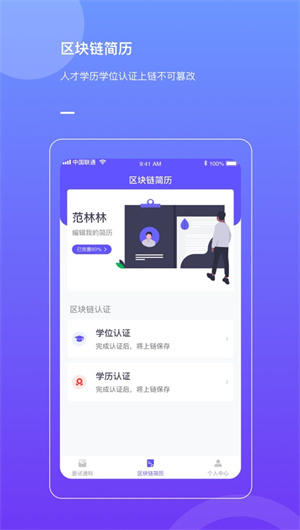 區塊鏈簡歷管理:人才鏈App使用先進的區塊鏈技術,提供簡歷管理服務,確保簡歷信息的真實性和安全性。