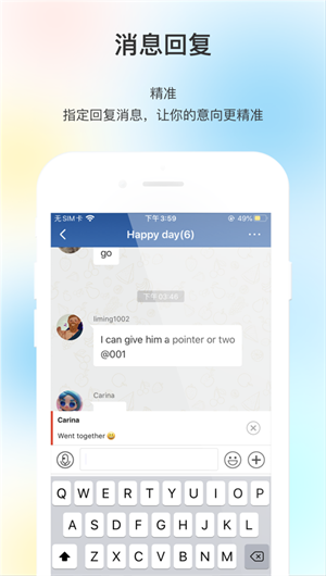 多人群聊功能:方便組建群聊,增進親友、同事間的互動溝通。
