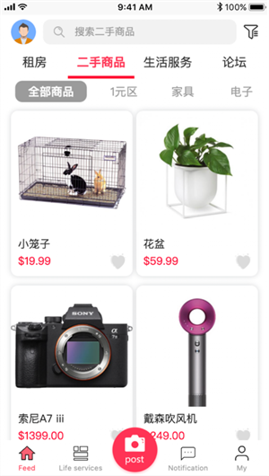 本地二手商品交流:一鍵發布二手商品信息,同時瀏覽周邊華人社區的商品信息。