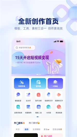創作貓是一款專為短視頻創作者設計的服務平臺,致力于解決創作和變現難題。創作貓App不同于其他單一模式的產品,它圍繞短視頻創作者的真實需求,采用內容+工具的模式,讓短視頻創作更加簡單高效,同時提升變現效率,幫助創作者實現更高的收益。