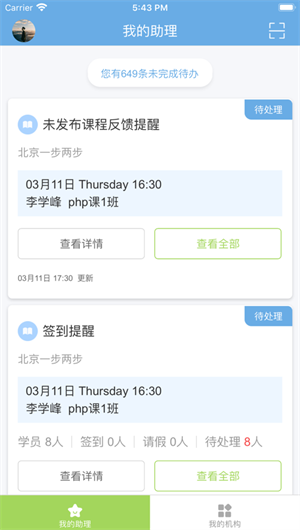 學(xué)員請假協(xié)同:一鍵請假功能,與教師實時同步,有效規(guī)避課程浪費。