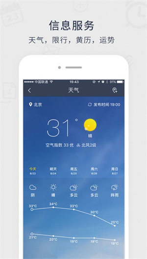 生活信息服務:提供天氣、車輛限行、星座和黃歷等各種實用信息。