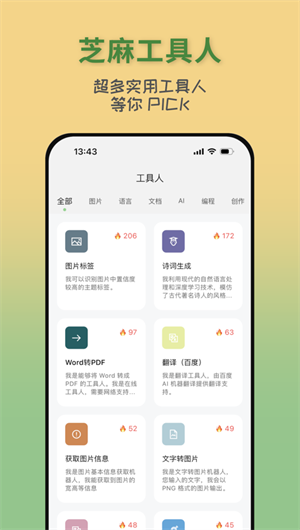 在這個(gè)數(shù)字化日益豐富的時(shí)代,芝麻工具人App呈現(xiàn)為一個(gè)集眾多功能于一身的高效率助手。它不僅限于常規(guī)的文件格式轉(zhuǎn)換或文本識別,更將這些功能與創(chuàng)新的對話形式完美結(jié)合,從而提供一種直觀、互動的解決方案。不僅如此,通過其獨(dú)特的場景模式,您可以自如地組合各種功能,創(chuàng)造出前所未有的使用方式,拓寬了數(shù)字工作與學(xué)習(xí)的可能性。