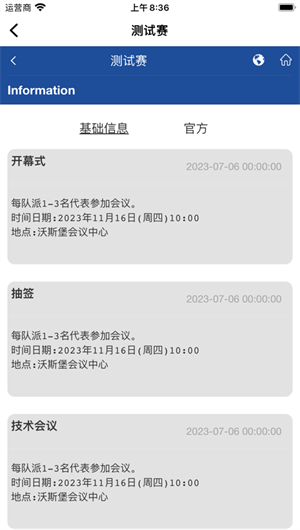 賽事實(shí)時(shí)更新:隨時(shí)查看賽事的檢錄、出場(chǎng)順序、實(shí)時(shí)比賽畫面和成績(jī)公告。